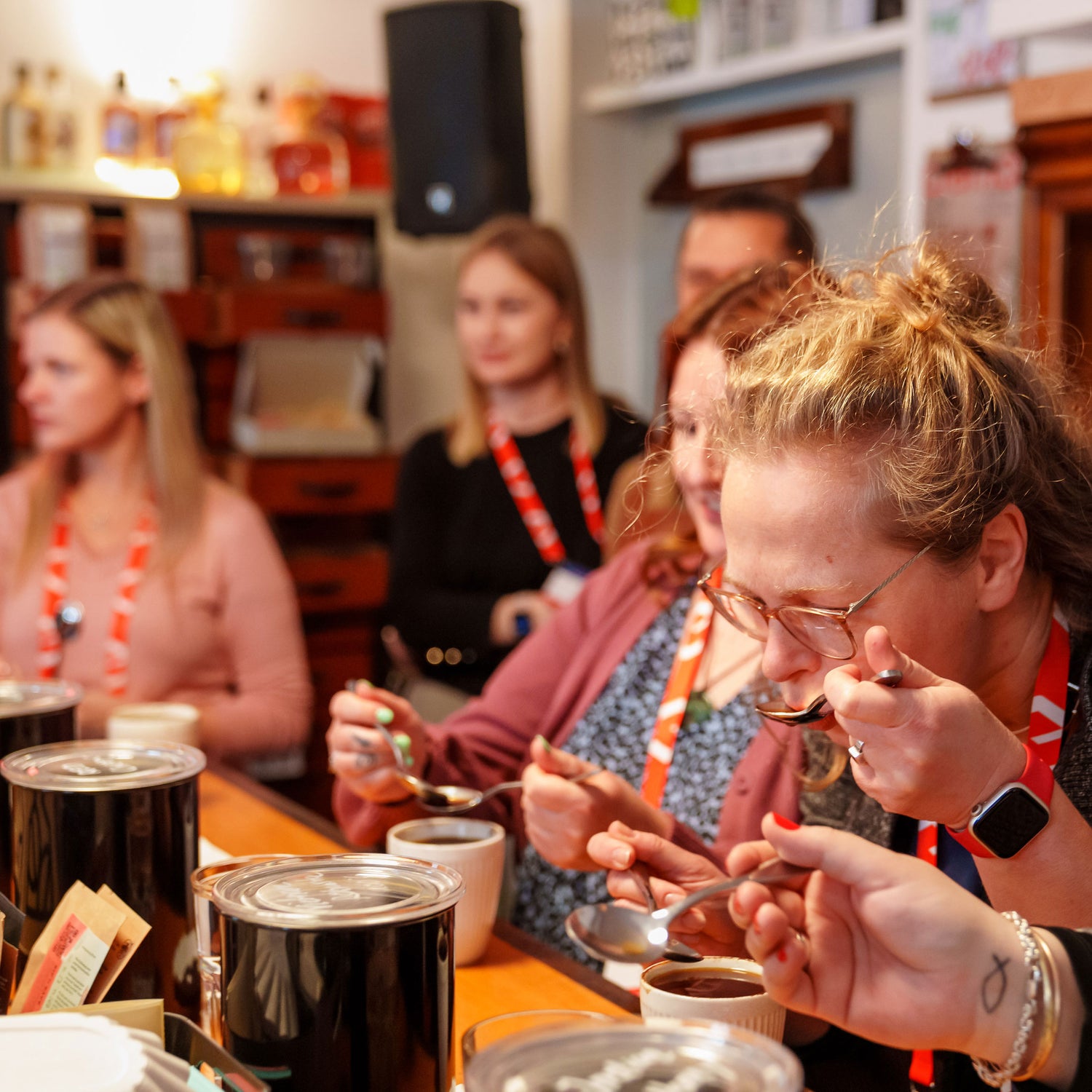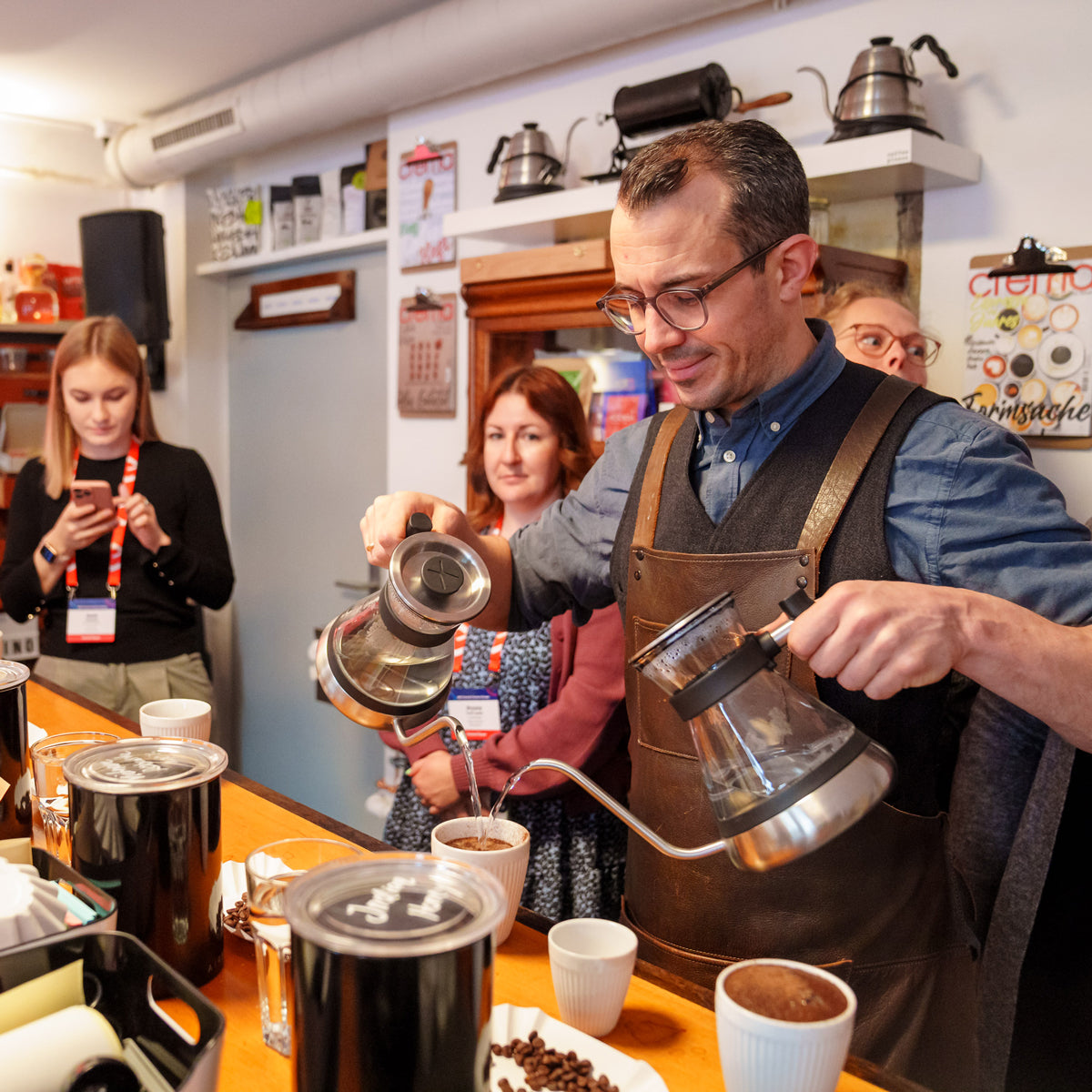 Erlebe eine Weltreise des Kaffees. Gemeinsam mahlen, brühen und verkosten bis zu 10 der verschiedensten Kaffeesorten aus aller Welt, um die einzigartigen Geschmacks- und Geruchsnoten in ihrer Gänze zu erleben. Unser Sensorikkurs eignet sich auch ausgezeichnet als Teambuilding-Maßnahme. Jeder Teilnehmer erhält von uns zusätzlich einen 500g Beutel Kaffee zum Mitnehmen.